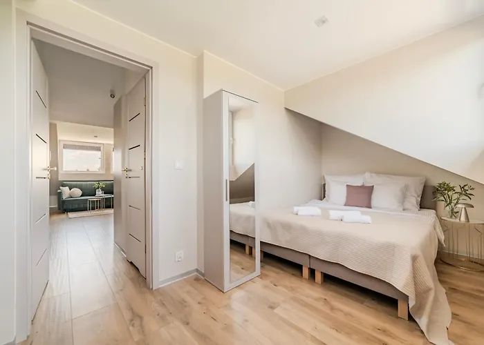 Die Apartments liegt in rund 10 Autominuten Entfernung vom Park an der Mühle. Das Museum der Kinematographie in Łódź ist in ca. 8 km Entfernung von diesen Unterkünften gelegen.